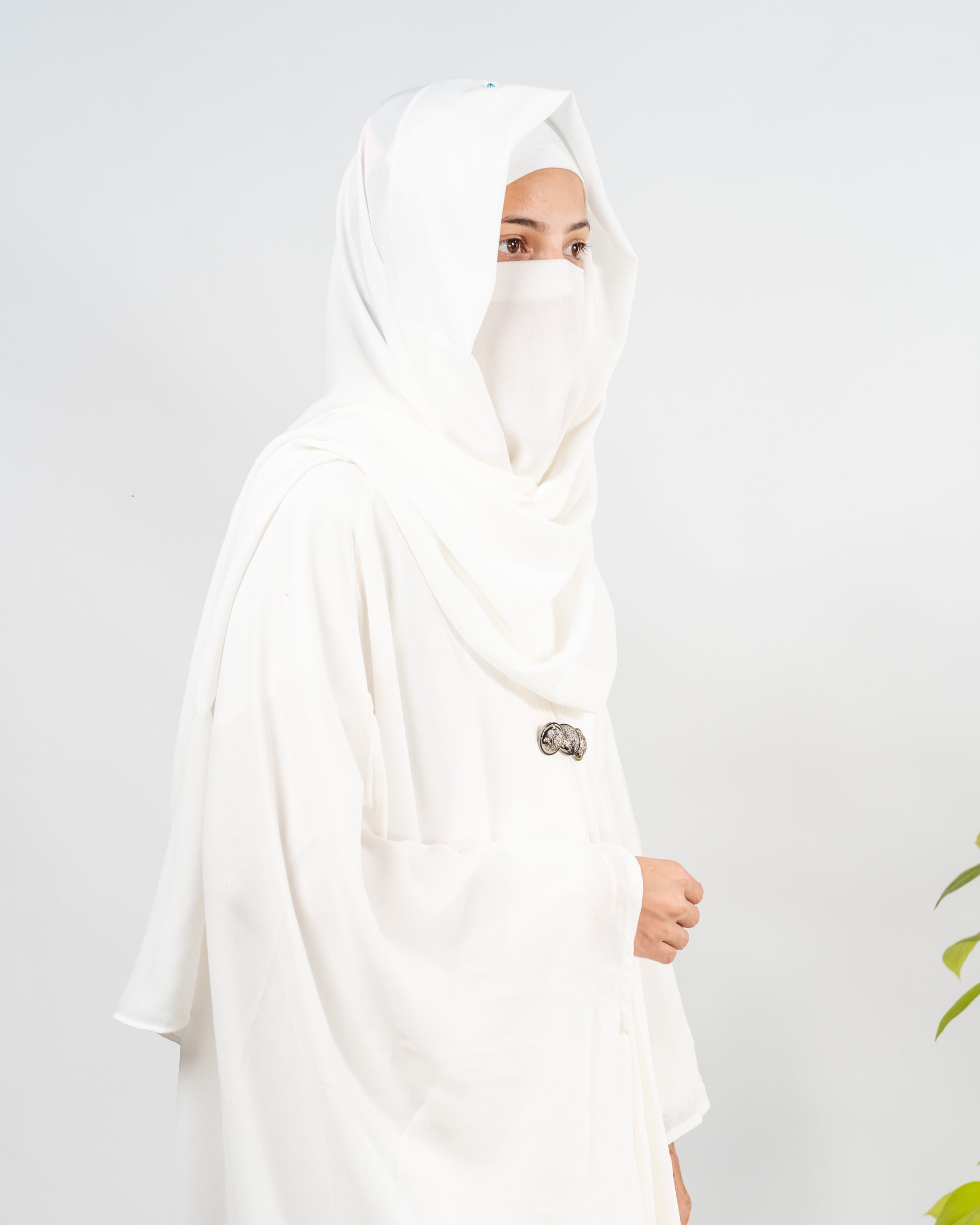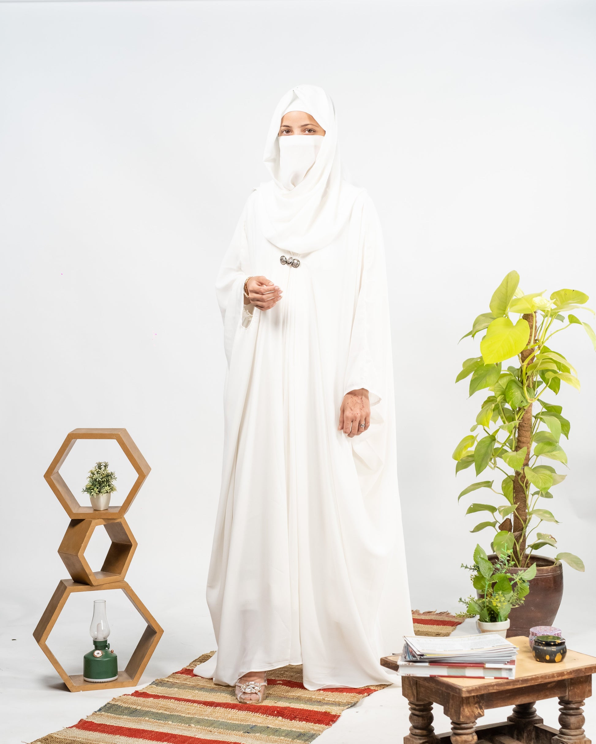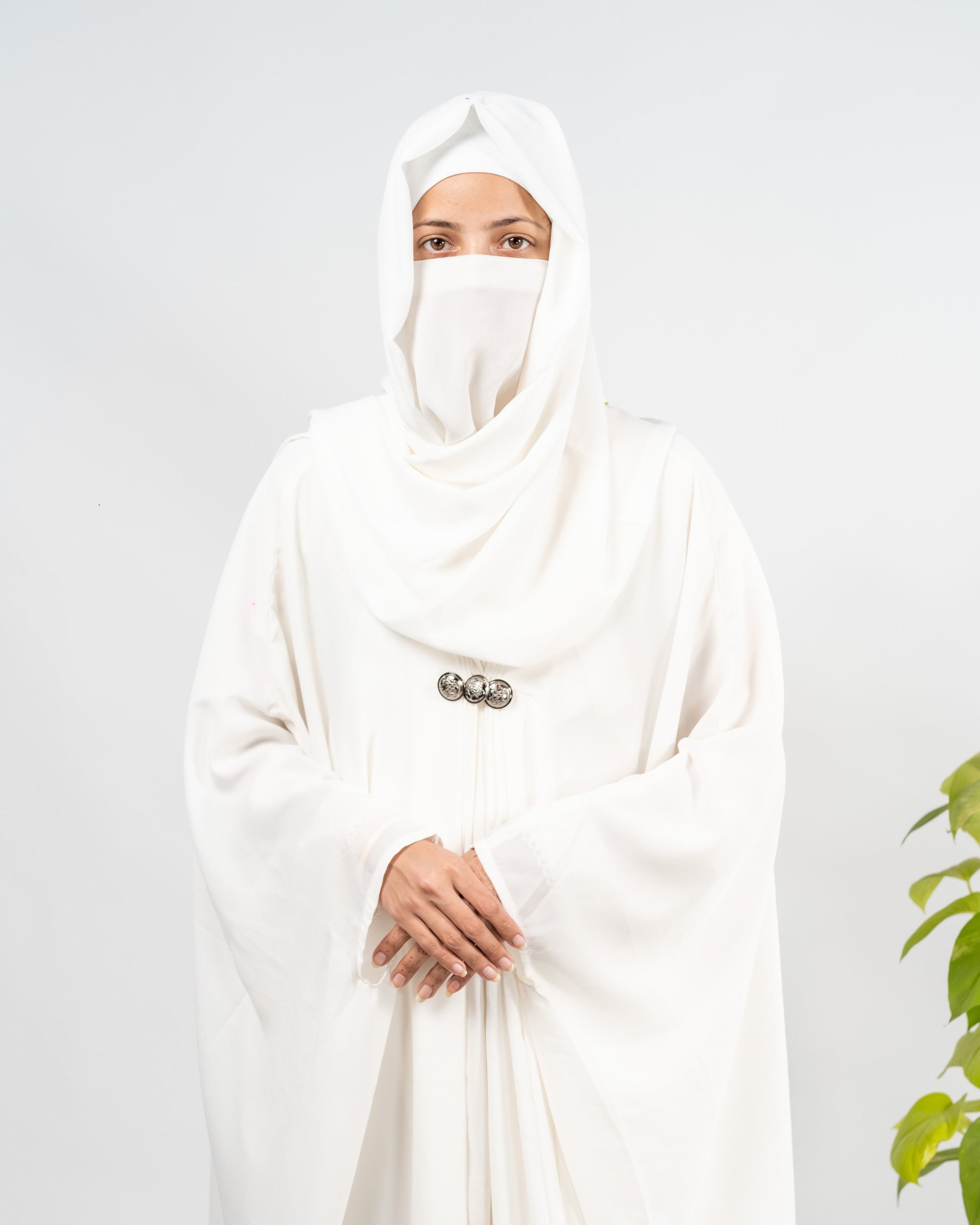Afreen || Pearl White Abaya || Manjan Fabric