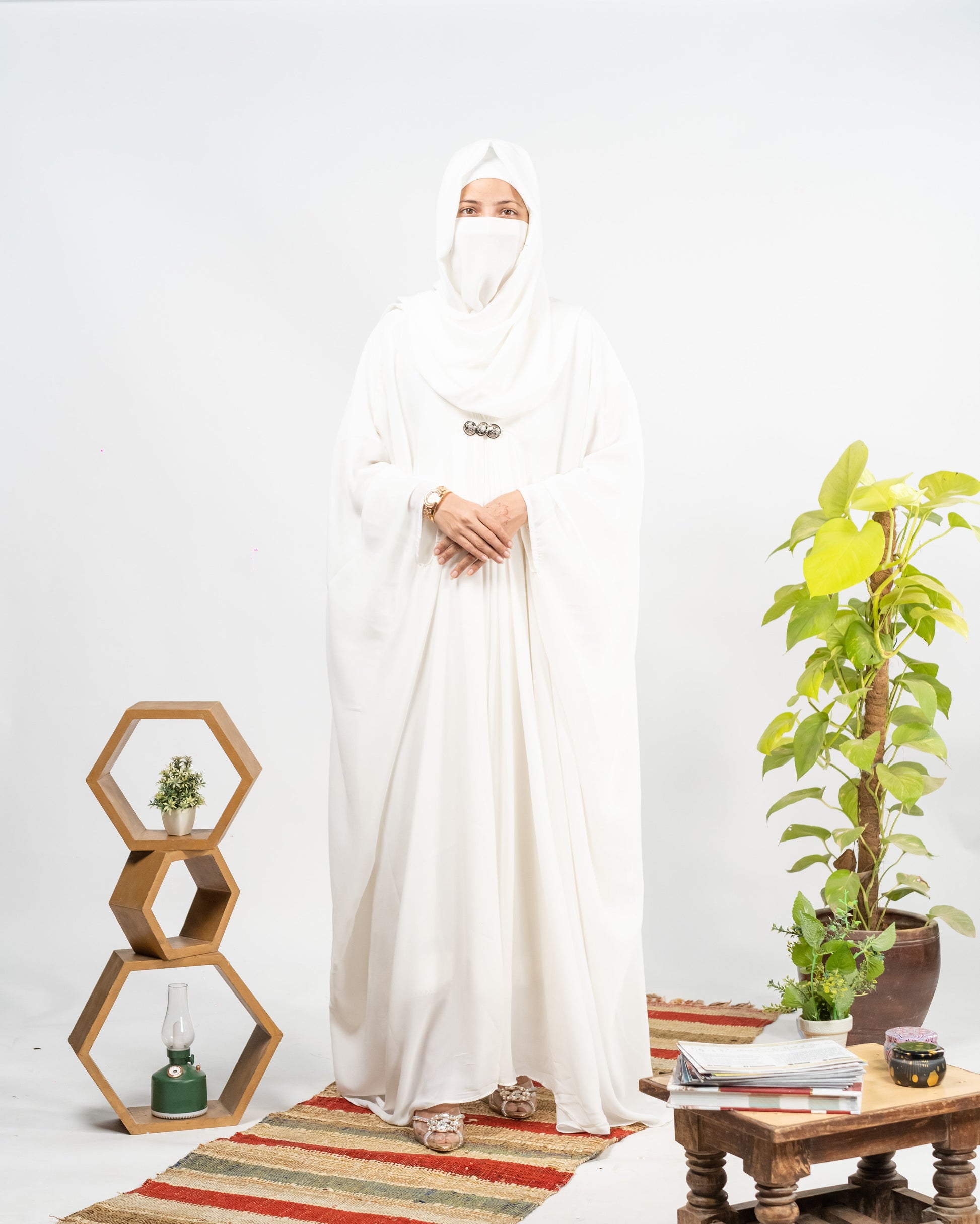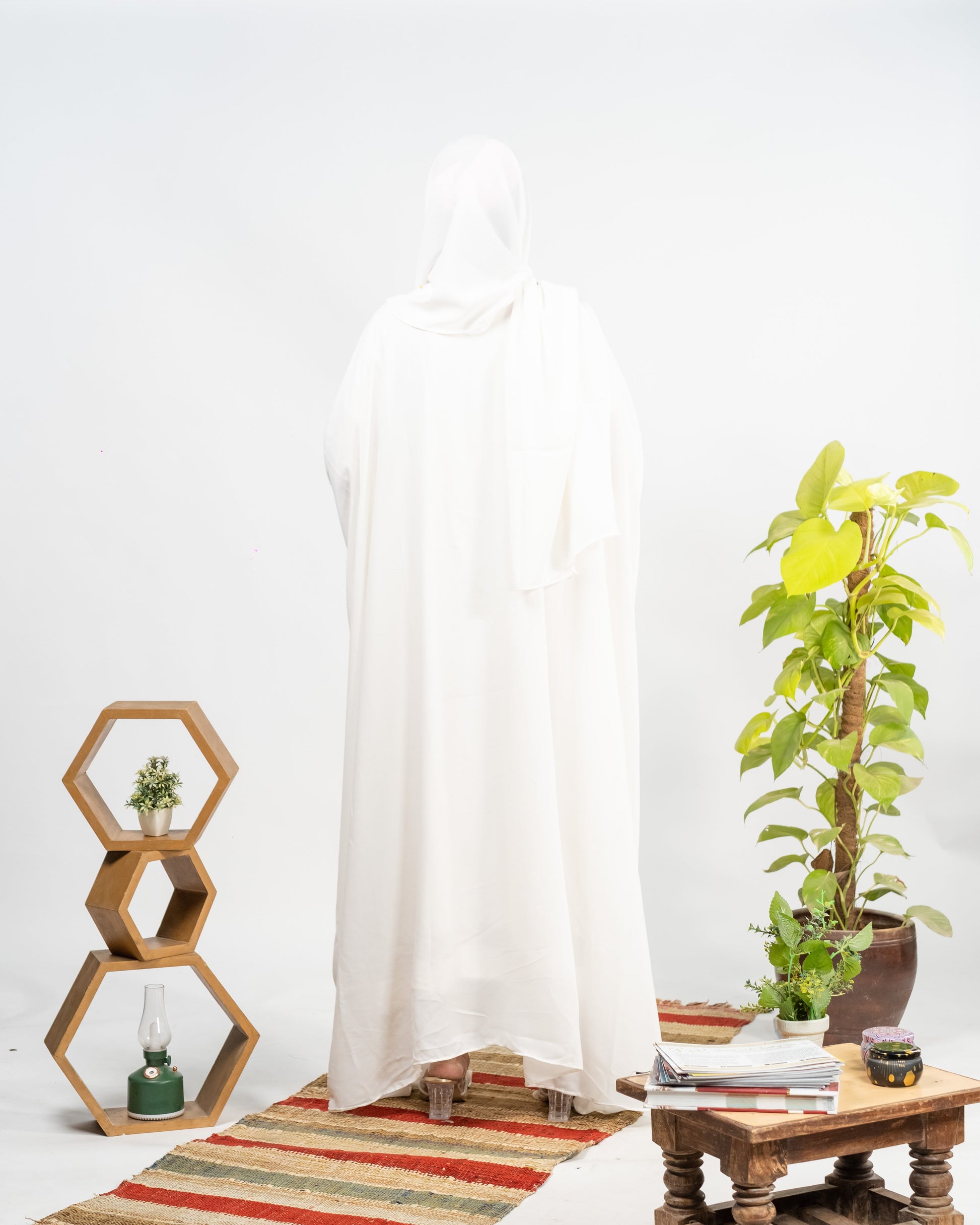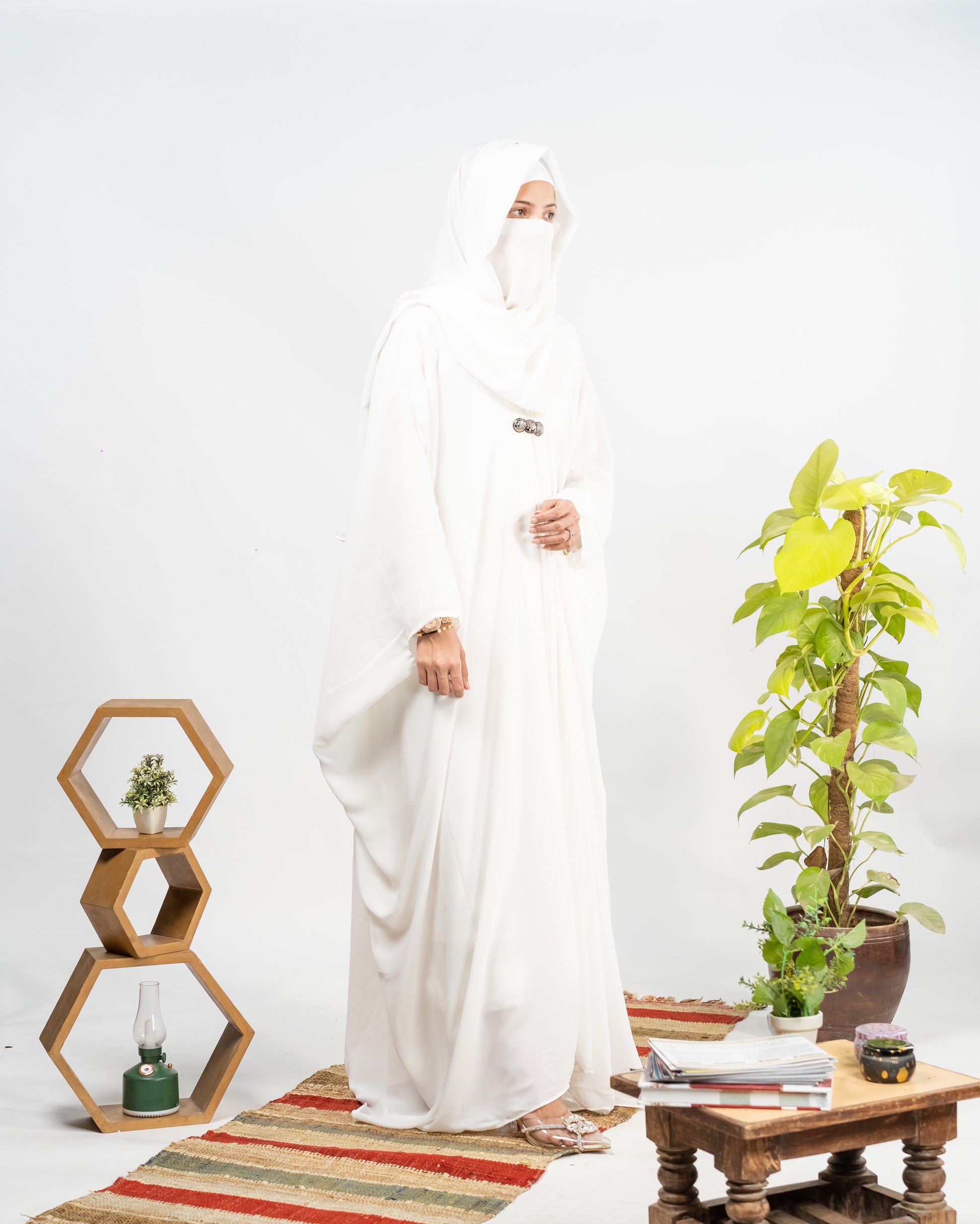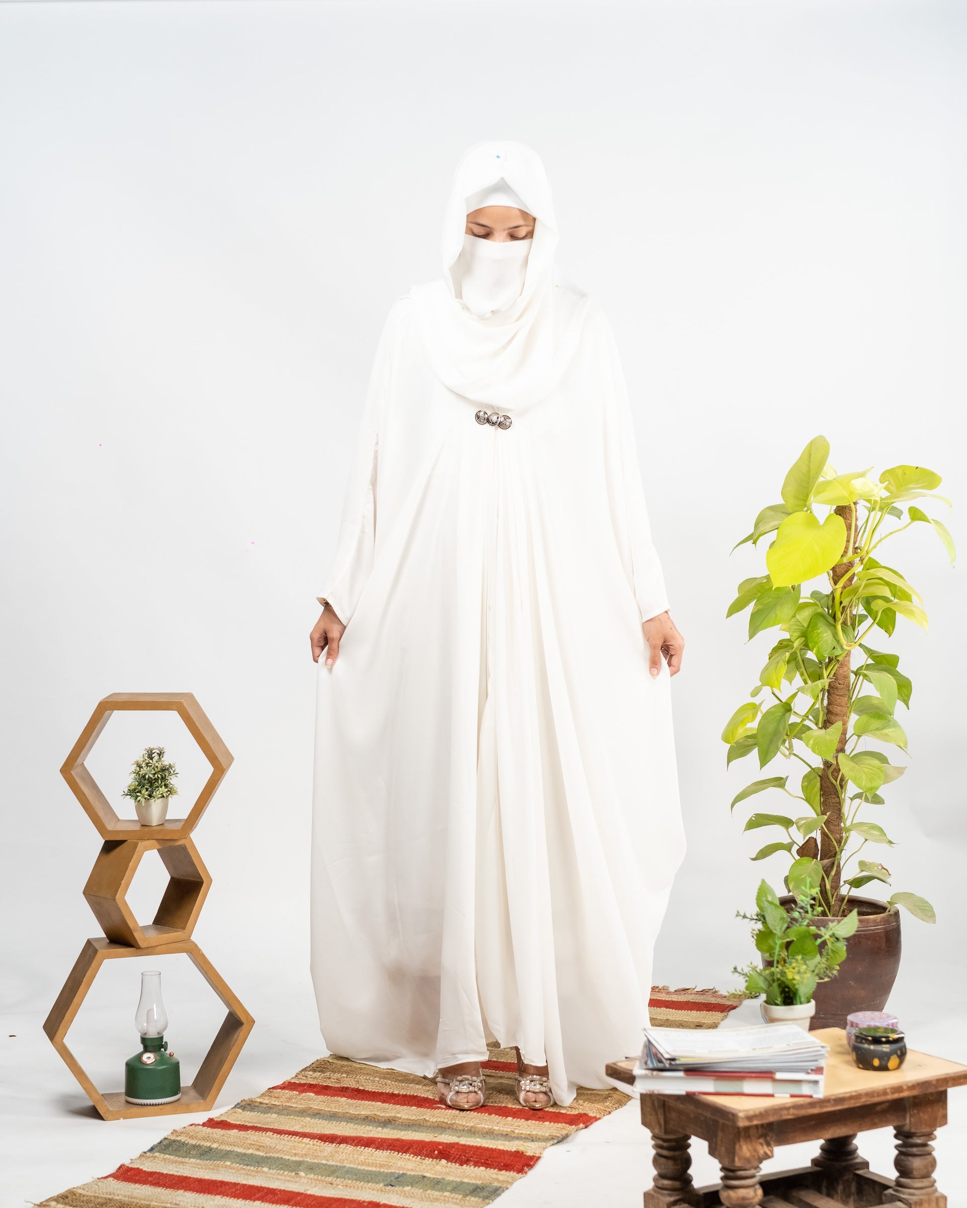Afreen || Pearl White Abaya || Manjan Fabric