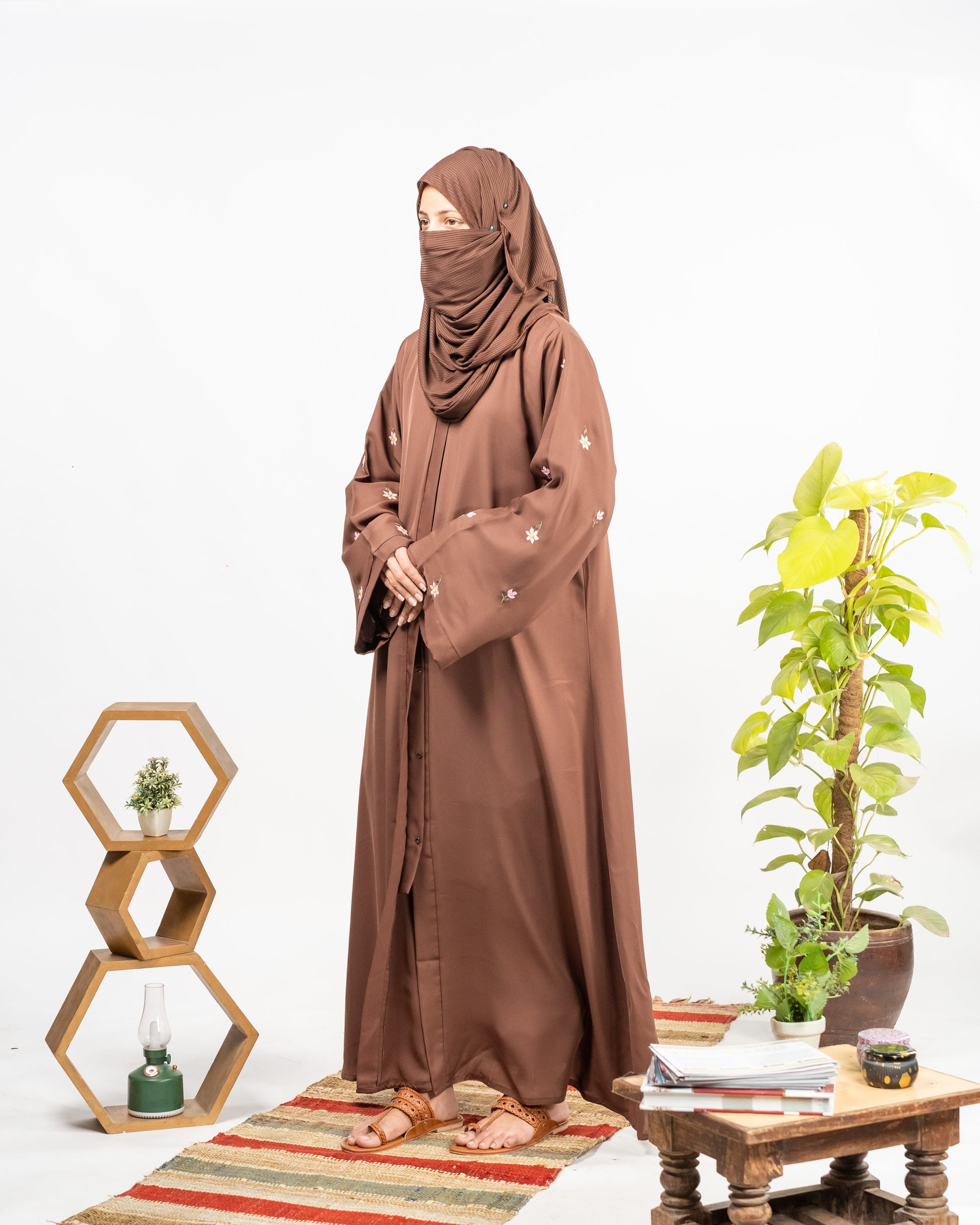Wania || Mocha Brown Abaya || Nida Fabric